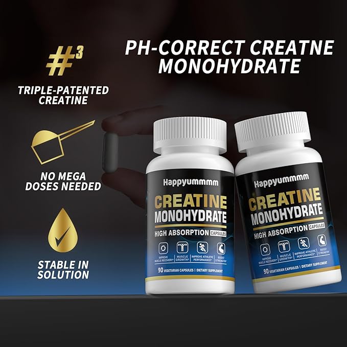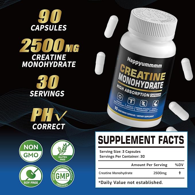 Creatine Monohydrate Capsules - Micronized Creatine Monohydrate, Creatine Pills - 3 Creatine Capsules per Serving, 2500mg, Gluten Free, 90 Capsules.