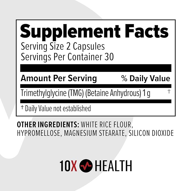 - Quality and Safety Assured: The 10X TMG Supplements from 10X Health System are made with premium ingredients, put through careful testing to ensure potency and purity, and are perfect for people looking to take control of their health and wellness.