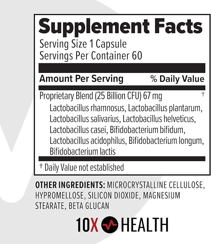 - Supports Gut Function and Balance: 10X Probiotics combines three probiotic strains; Bifidobacterium Longum, Lactobacillus rhamnosus, and Lactobacillus acidophilus along with digestive enzymes to support digestive wellness.