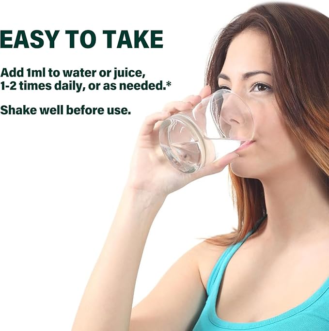 - ☀ EASY AND EFFECTIVE: Simply add 1ml to water or juice, 1-2 times daily, or as needed. Remember to shake well before use.