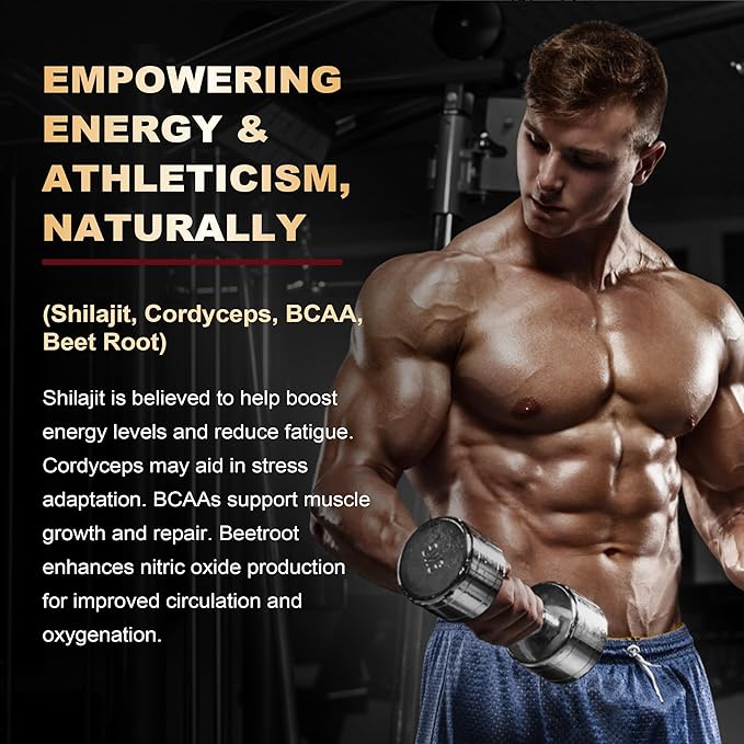 - ENERGIZING YOU: Our Shilajit supplement features a synergistic blend of Cordyceps extract 300mg and Beetroot extract 200mg, designed to naturally robust health. Cordyceps mushrooms extract from the fruiting bodies, rich in polysaccharides & nucleosides, improves circulation and oxygen utilization. Combined with Beetroot’s ability to boost nitric oxide production, this formulation provides a sustainable and natural boost of strength, perfect for daily activities and intensive tasks.