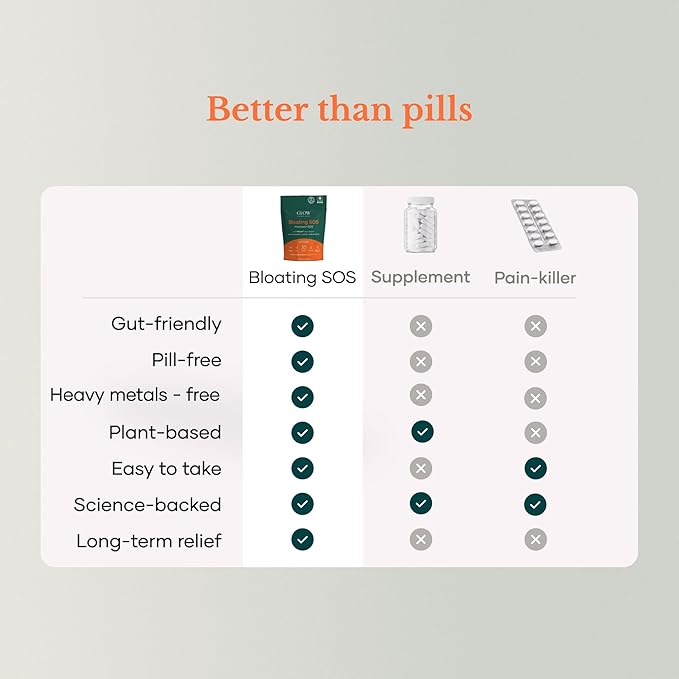 - BLOATING RELIEF: Bloating SOS is formulated to tackle bloating at its core. The enriched blood orange extract, rich in biophenols, works synergistically with natural Ingredients & digestive enzymes to alleviate discomfort, promoting digestive harmony