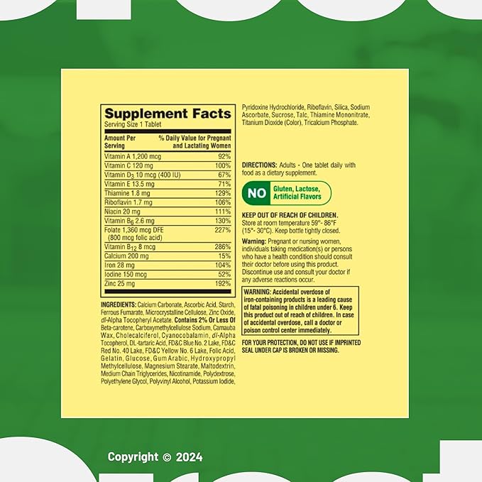 - Comprehensive blend of key nutrients: Prenatal Multivitamin/Multimineral Tablets are specifically formulated to provide essential nutrients for both the mother and developing baby, including folic acid, iron, and calcium, along with other important vitamins and minerals.