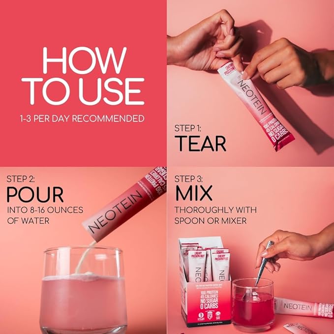 - ELECTROLYTE POWDER PACKETS: Drink Neotein at wake-up for a morning boost, post-workout for recovery, or anytime during the day to maintain energy and hydration. Packaged in easy-to-carry single serve hydration packets, Neotein is perfect for busy lifestyles, travel, or when you need a quick nutritional boost without the bulk.