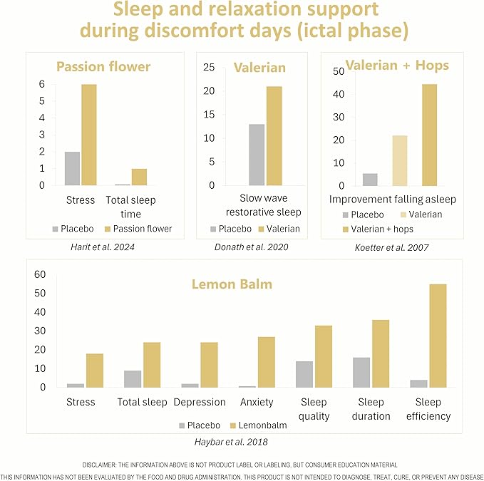 - MigReLax: Use for women and men during the migraine discomfort days of the ictal/migraine phase (premonitory, headache, postdrome, aura stages), as well as tension headache days to help your sleep and relaxation needs with valerian, lemon balm, passion flower, and hops