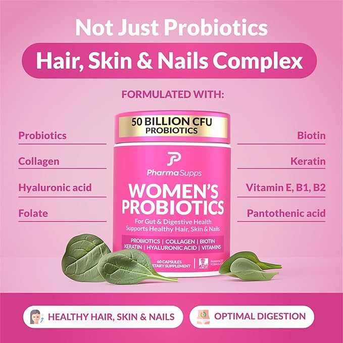 Advanced Women's Probiotics for Gut Health - Hair, Skin, & Nails Vitamins Support - 50 Billion CFU w/Collagen, Biotin & Keratin - Probiotic Supplement for Digestive Health & Bloating Relief, USA-Made