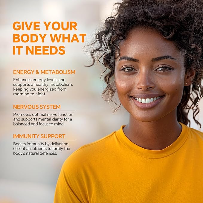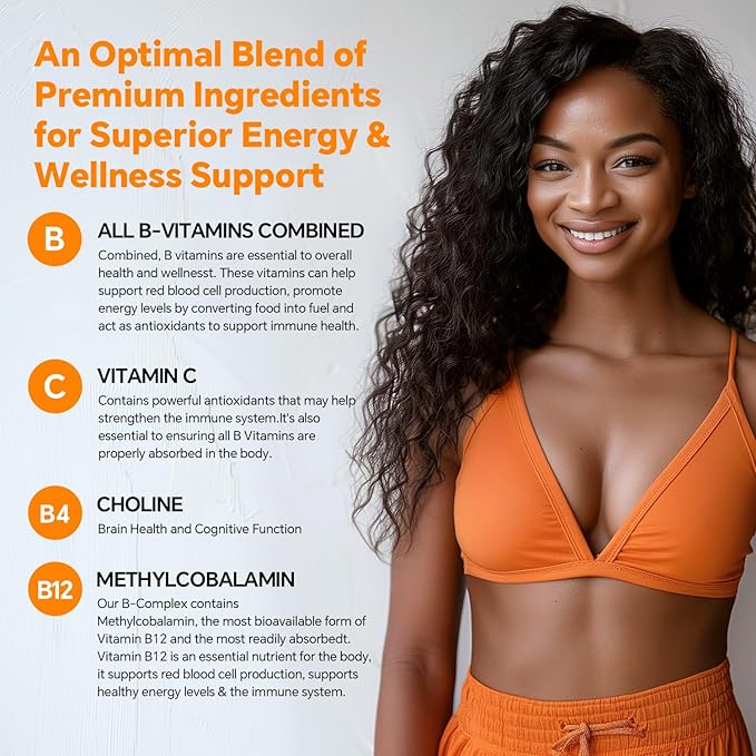 - šAll B Vitamins - Provides a comprehensive intake of all B vitamins for synergistic effects. B12, Thiamin (B1), Riboflavin (B2), Niacin (B3), Pantothenic Acid (B5), P5P (B6), Folate, and Biotin (B7) play a vital role in cellular energy production, converting carbohydrates into energy, and metabolizing fats and proteins. Supports sustained energy levels, healthy meta-bolism, and overall vitality.Promotes healthy nerve function and cognitive performance, enhancing mental clarity and focus.
