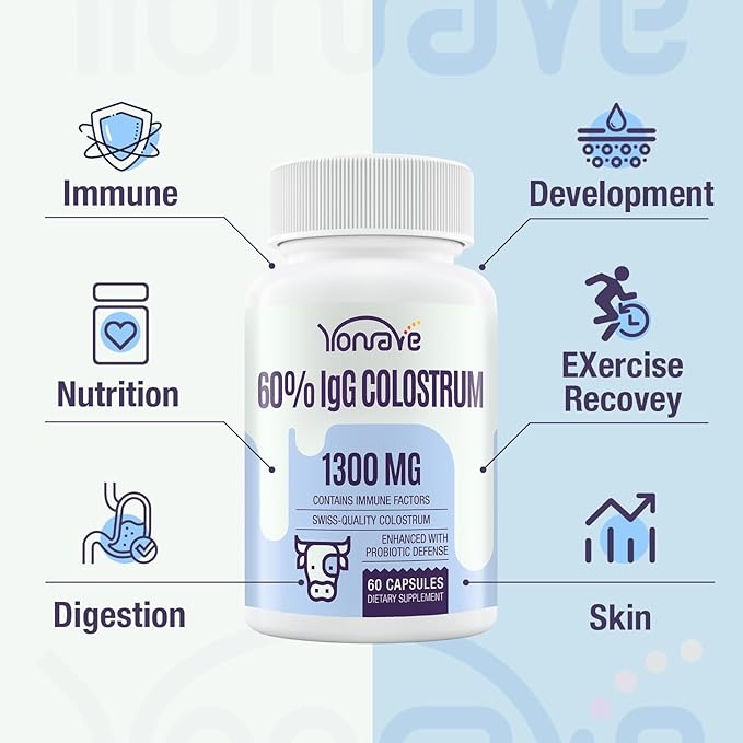 - 1300MG Colostrum Capsules: Each capsule is rich in immunoglobulins, proteins, vitamins and minerals, providing comprehensive nutrition. And the precise dosage design makes it easy to carry and use daily.