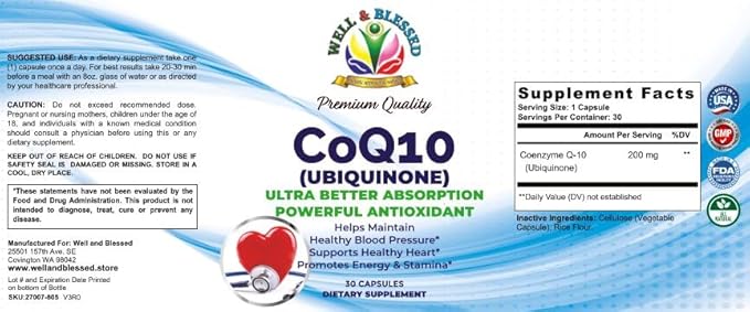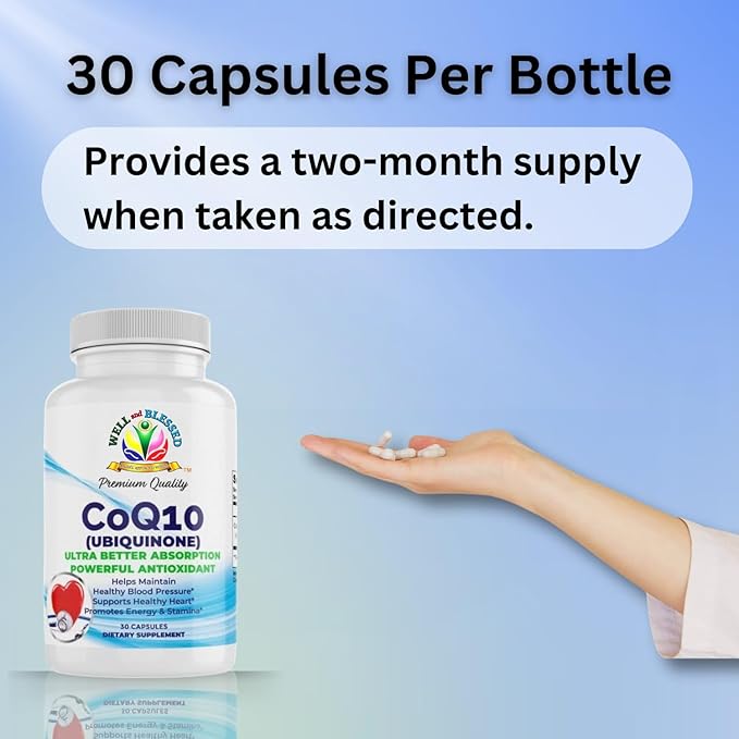 - 30 CoQ10 Capsules Per Bottle – Each bottle contains 30 easy-to-swallow CoQ10 capsules, co q 10 supplement providing a two-month supply when taken as directed. Convenient for daily energy and heart health support.