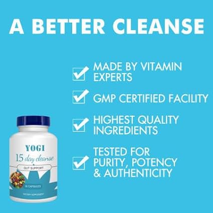 15 Day Cleanse - Gut and Colon Support, Advanced Gut Cleanse Detox with Senna, Cascara Sagrada & Psyllium Husk, 30 Capsules, Yogi, Cleanse capsules, cleanse support, White/Blue
