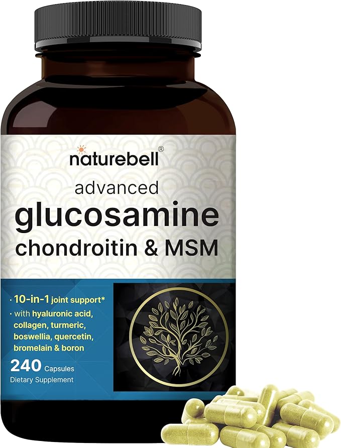 Advanced Glucosamine Chondroitin MSM Supplement, 240 Capsules | 10-in-1 Joint Support Complex – with Hyaluronic Acid, Collagen, Turmeric, Boswellia, & More – Non-GMO