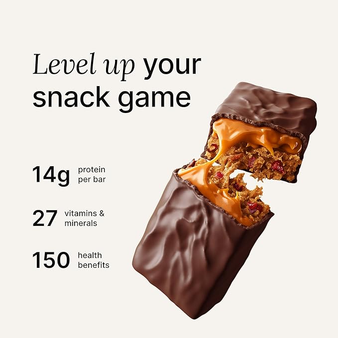 - COMPLETE NUTRITION BARS: A nutritionally complete bar wrapped in a vegan cocoa coating with a smooth caramel layer. High in protein and fiber, with all 27 essential vitamins and minerals, our brand new bars are the perfect snack to satisfy your sweet tooth and fuel your body with quality nutrition.