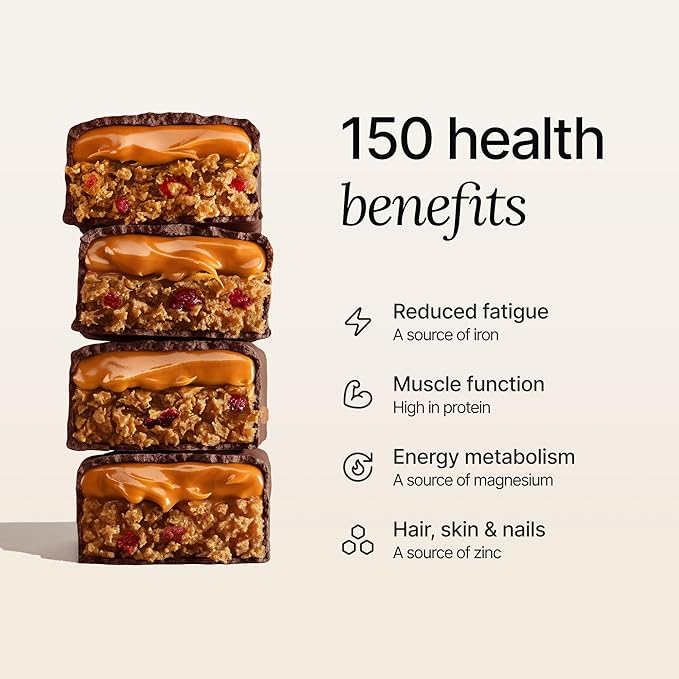 - 150 HEALTH AND WELLNESS BENEFITS: Our Complete Nutrition Bars are full of essential nutrients such as iron to reduce fatigue, vitamin A to support immunity, zinc for healthy skin, nails and hair, and fiber for digestive support.