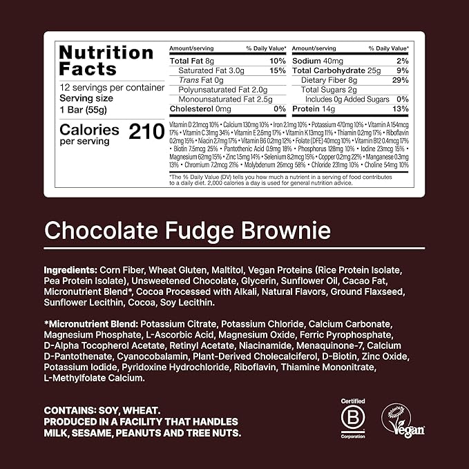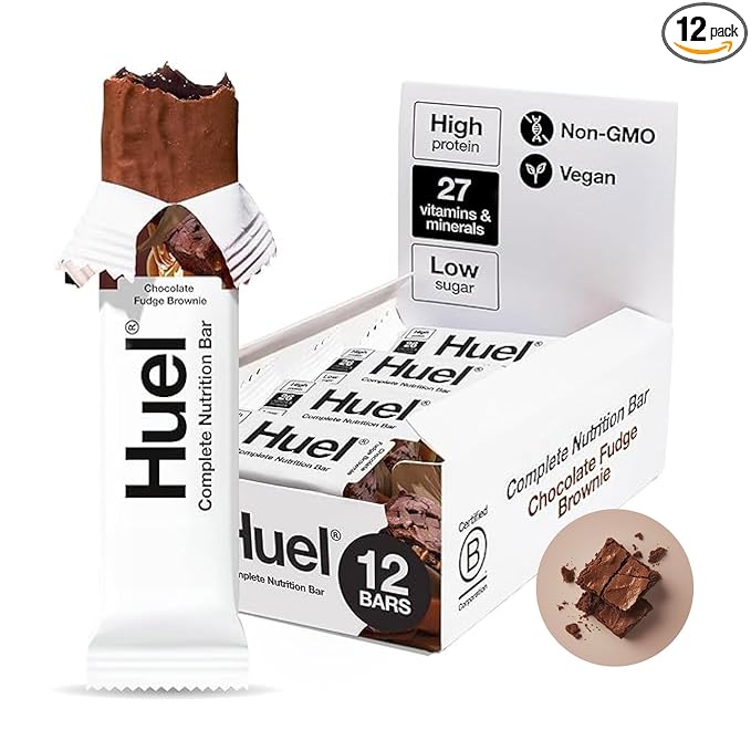 Huel Complete Nutrition Vegan Protein Bars | Chocolate Fudge Brownie | 13g Protein, 27 Vitamins and Minerals, 2g Sugar, Non-GMO, 100% Plant Based Snack | 12 Pack