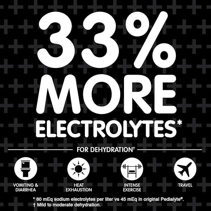 - MORE ELECTROLYTES: Pedialyte AdvancedCare Plus powder packets have 33% more electrolytes* in every serving to replace more of what you’ve lost due to dehydration