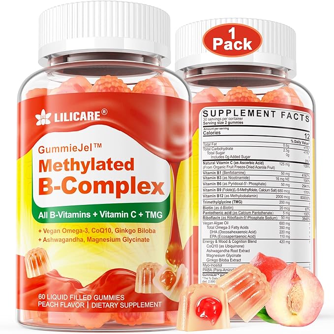 - Delicious Sugar-Free Filled Gummies - Advanced Technology: Our Vitamin B Gummies are made with advanced GummieJel production technology, which encapsulates temperature/oxygen/PH-sensitive active ingredients (such as B vitamins, Vit C) in the center of the gummy, making the active ingredients more stable and more absorbable. GummieJel technology makes Vitamin B Complex Gummies pleasant to the taste and explosive in flavor! No gelatin, easy-to-chew outer layer, natural peach flavored filling.