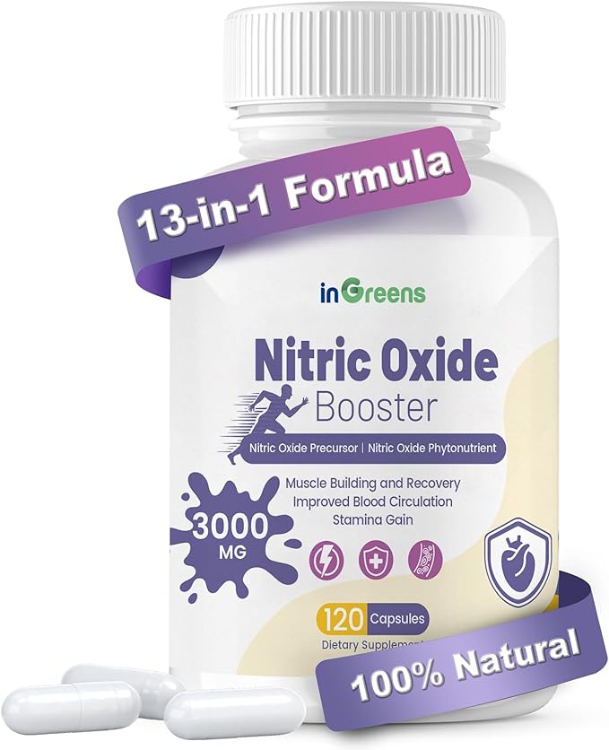 Nitric Oxide Supplements for Men & Women, 3000mg, 120 Capsules - 13-in-1 Nitric Oxide Booster for Muscle Growth, Heart Health, Energy & Circulation – Non-GMO, Gluten-Free