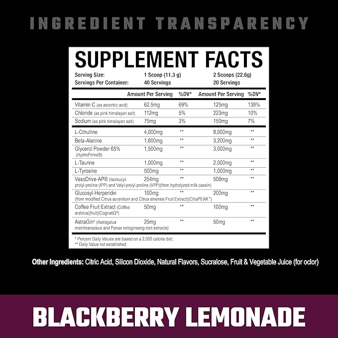 Axe & Sledge Supplements Hydraulic Stimulant-Free Pump Pre-Workout Powder, 40 Servings, (Pack of 1) (BlackBerry Lemonade)