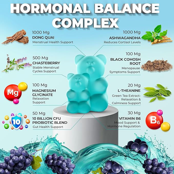- 💖 PMS GUMMIES HORMONAL BALANCE FOR WOMEN: Dong Quai, known as the "female ginseng," supports menstrual health, while Chasteberry promotes hormonal balance. Black Cohosh for menopause is recognized for easing discomfort during menopause. These ingredients have been traditionally used to help alleviate symptoms such as menstrual cramp relief, PMS mood swings, and hot flashes menopause relief.