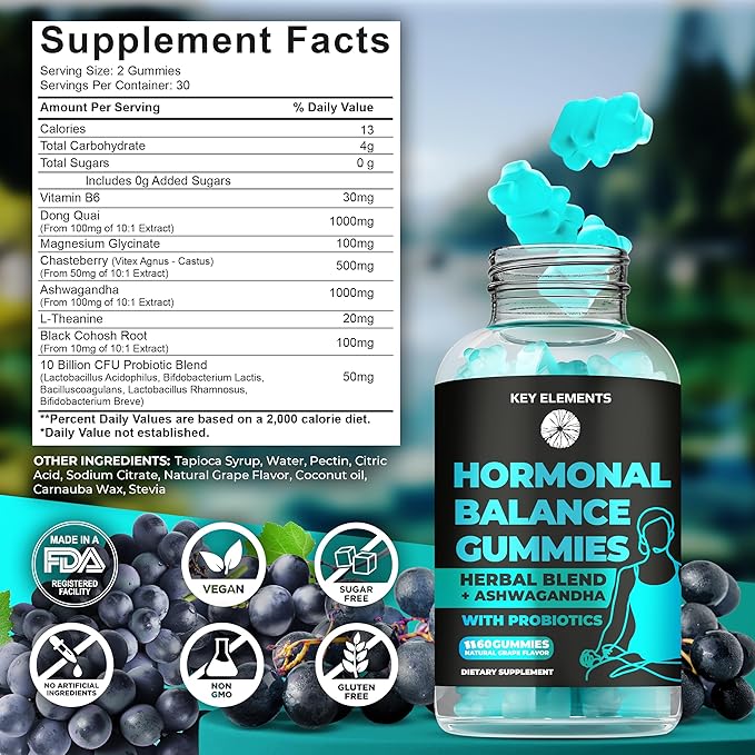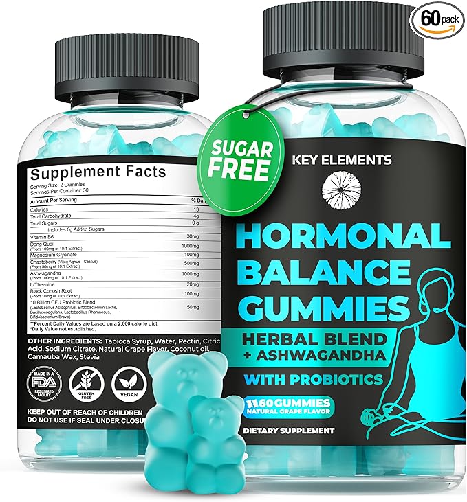 - 💖 UNIQUE HERBAL COMPLEX: Key Elements introduces an innovative formula of PMS Gummies hormonal balance supplements for women, featuring a traditional blend of herbs cherished in ancient Ayurvedic medicine. Dong Quai, Chasteberry, and Black Cohosh Root are powerful ingredients that have been used for centuries to support hormonal balance gummies for women