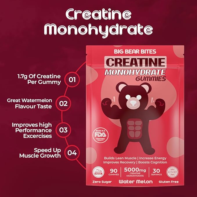 - ๐ฆ๐๐ฝ๐ฝ๐ผ๐ฟ๐๐ ๐ ๐๐๐ฐ๐น๐ฒ ๐๐ฟ๐ผ๐๐๐ต & ๐ฃ๐ฒ๐ฟ๐ณ๐ผ๐ฟ๐บ๐ฎ๐ป๐ฐ๐ฒ: Creatine monohydrate is renowned for its effectiveness in supporting muscle growth, increasing strength, and enhancing overall athletic performance. Incorporating our energy gummies into your daily regimen can help you achieve your fitness goals and elevate your workout results.