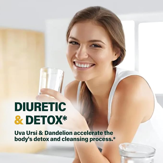 - DIURETIC & DETOX: Our vegan supplement speeds up the body's detox process. Uva Ursi is a well-known natural diuretic. Combined with Corn Silk and Horsetail, it reduces swelling and bloating to support bladder health. Additionally, our tincture includes Dandelion to boost digestive function. It promotes bowel movements to improve indigestion and constipation. All ingredients work together to enhance your metabolism.*