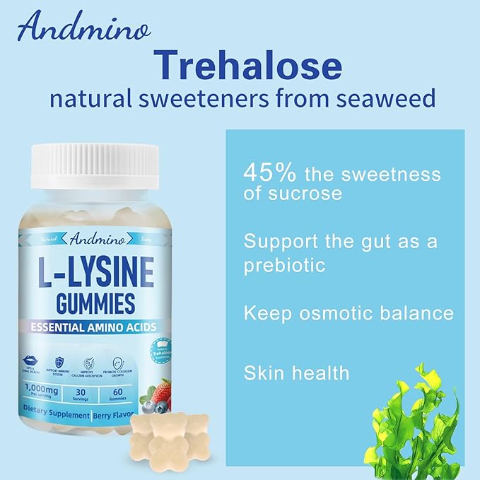- Andmino Gummies with Trehalose: Trehalose is a healthy sweetener, the sweetness of trehalose is 45% of sucrose. Trehalose benefits to gut health and has antioxidant properties