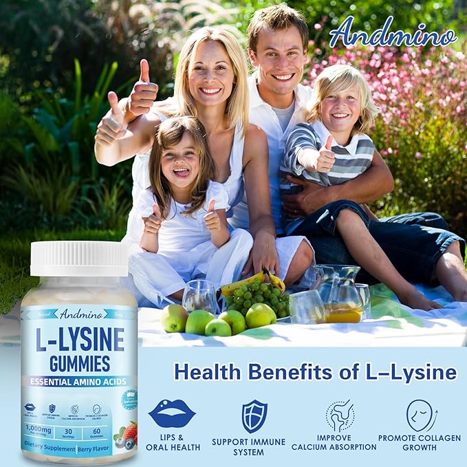 - Health of L-Lysine: The L-Lysine benefits lip and mouth health, boosts the immune system and collagen production for adults and kids. Take two gummies daily and easier to take