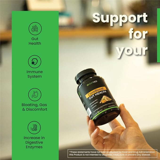 Gut Health Supplement Coreboost with Ashwagandha, Carom Seeds, Turmeric - Prebiotics and Probiotics for Women & Men - 2 Billion CFU-Best for Digestive Health, Bloating Relief, Gas Reduction