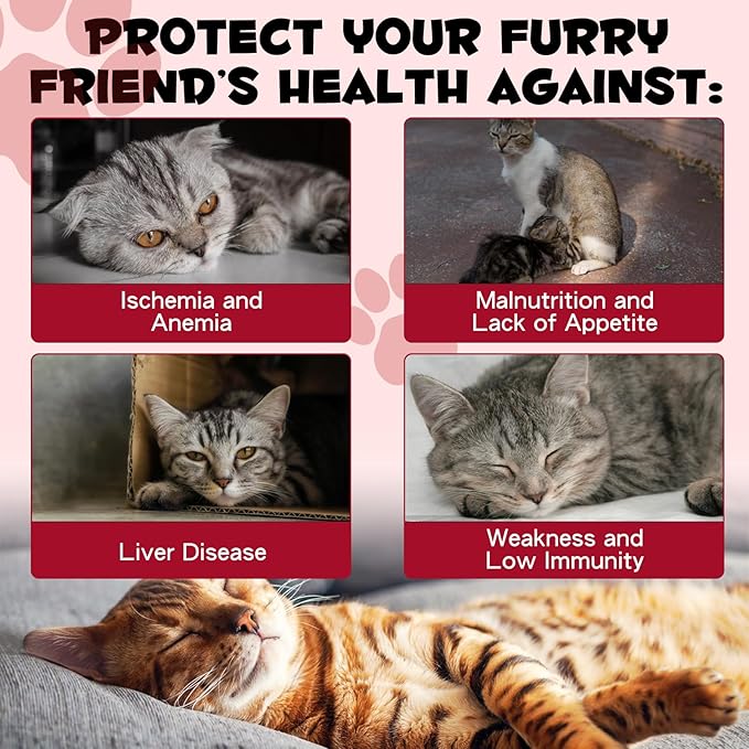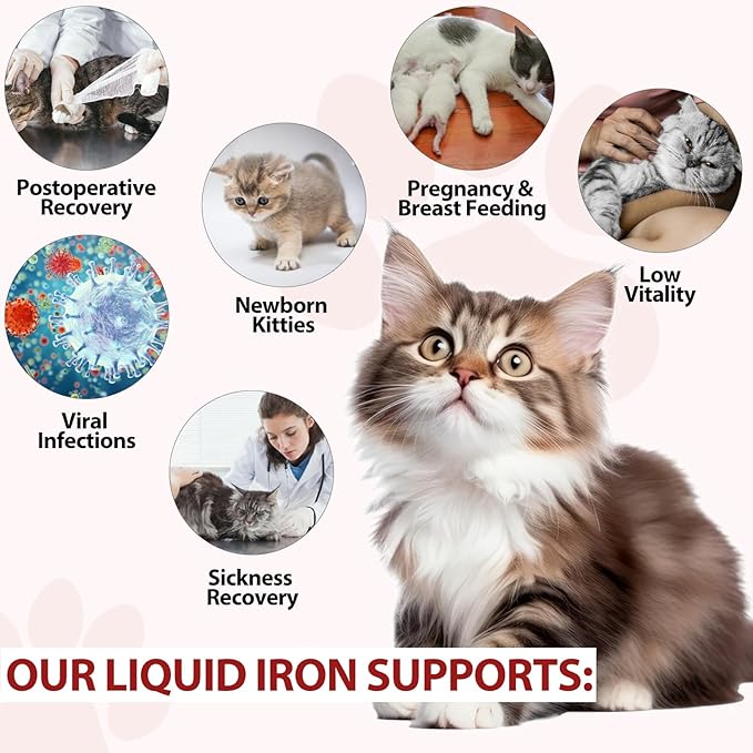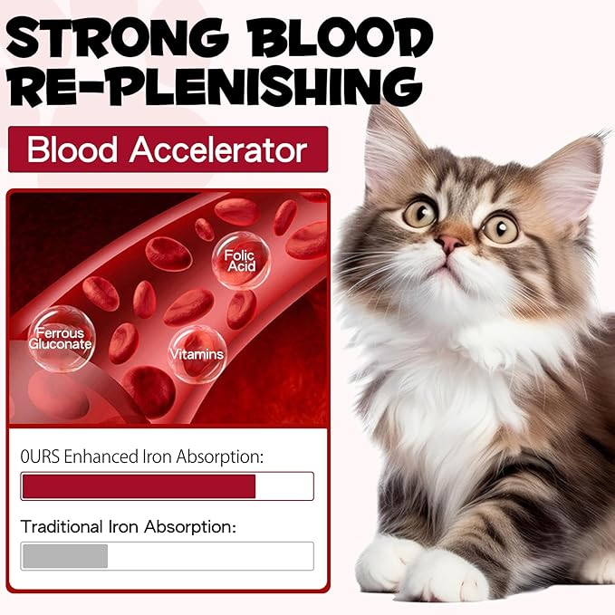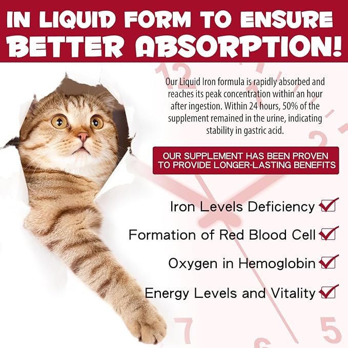 - Safe for Cats - Iron and vitamin deficiencies can significantly lower the red blood cells and result in anemia, weakness and lowered immunity. Our cat supplement drops is in liquid form which for absorbing faster and rapidly provides elemental iron, reducing the possibility of stomach discomfort, irritation, or constipation.