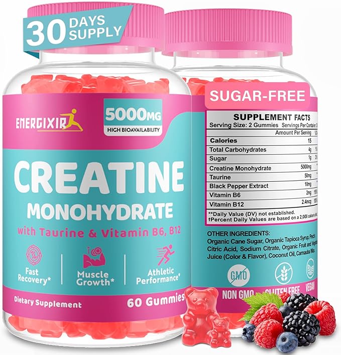 - Optimal Efficiency And Better Absorption: These creatine monohydrate gummies combine Taurine with vitamins B6 and B12 for athletic performance, energy production and metabolism. Their scientifically formulated blend ensures a perfect balance of safety and effectiveness. Creatine for women has a tasty berry flavor and easy to take, just get 2 gummies daily in an easy and delicious way