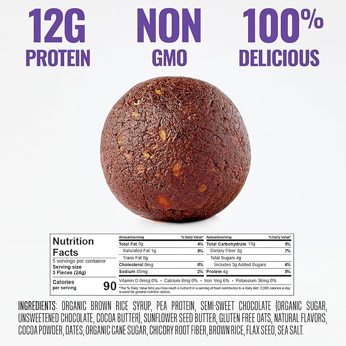 - RIDICULOUSLY TASTY CHOCOLATE BROWNIE BITES: These mouth-watering brownie bites are pleasantly soft and chewy while offering 5 grams of protein in each serving. Our easy to store 6 x 4oz bags helps you bring snacks on the go