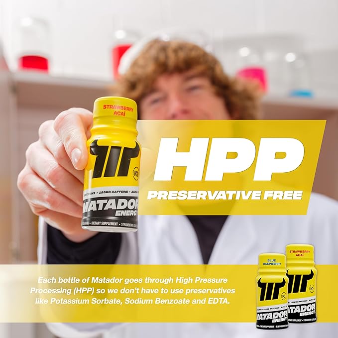 - FINALLY A NEW ENERGY SHOT: Matador is a new better-for-you energy shot formulated with NO sugar, NO synthetic caffeine, NO artificial flavors, or colors. Prioritize performance with 185 MG of natural caffeine from coffee beans and a nootropic blend for balanced energy and focus.