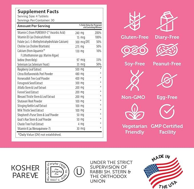 - BREASTFEEDING VITAMINS & HERBS BLEND - Featuring a combination of time-tested herbs like Blessed Thistle, Raspberry Leaf, Fenugreek Seed, Stinging Nettle, Shatavari Root, and Milk Thistle that provide lactation support for breastfeeding and support healthy milk production.