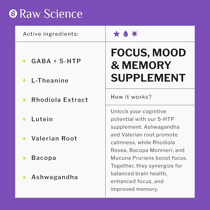 - 【 HEALTH SUPPLEMENT】 — Support your well-being with our mood supplement. Raw Science stress calm formula includes GABA supplements for relaxation. Enhanced with GABA L-Theanine supplement, 5 HTP supplement, L Tryptophan, and Mucuna Pruriens supplements, it promotes emotional balance and clarity.