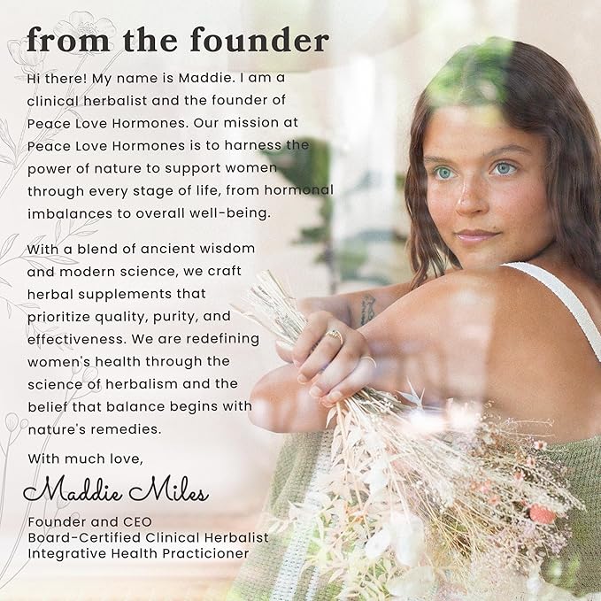 - Peace Love Hormones: Infused with millennia-old wisdom from Traditional Chinese Medicine and enhanced by modern-day science, we aspire to guide women back to their roots by empowering them to heal and flourish naturally through the power of herbal medicine