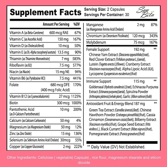 - HOLISTIC WELLNESS SUPPORT: Experience comprehensive health benefits with this multivitamin for women; a perfect blend of 20 essential vitamins, minerals, and nutrients designed to support overall wellness and vitality in every aspect of your daily life.