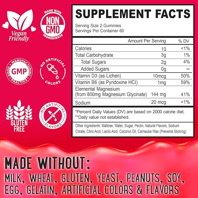- Gentle and Effective Magnesium Support for All Ages: Each magnesium glycinate gummy delivers 400mg of magnesium glycinate with vitamin B6 & D3, offering enhanced absorption to support muscle health, relaxation, and restful sleep for the whole family.