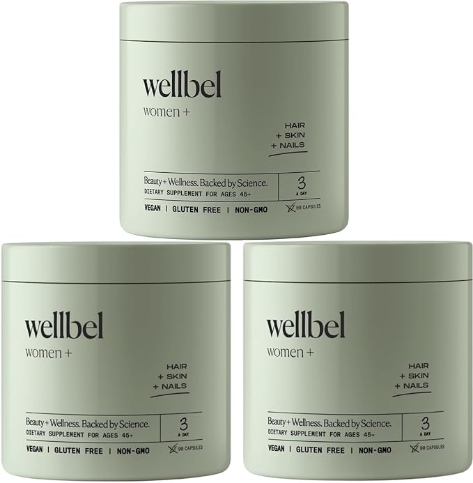 Wellbel Women + Clean Supplement for Hair, Skin, and Nails, Vegan, Gluten Free, Non GMO 90 Count - 3 Pack