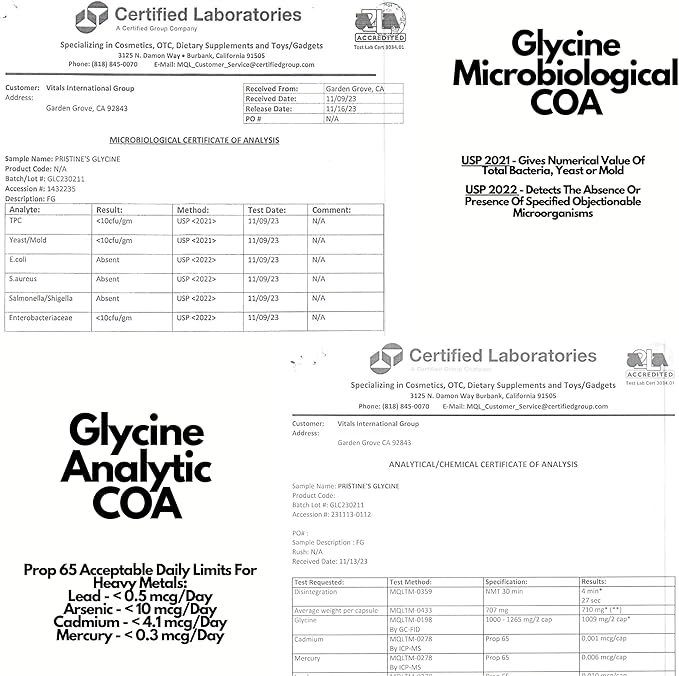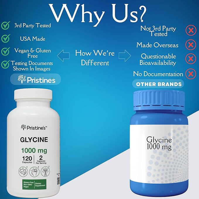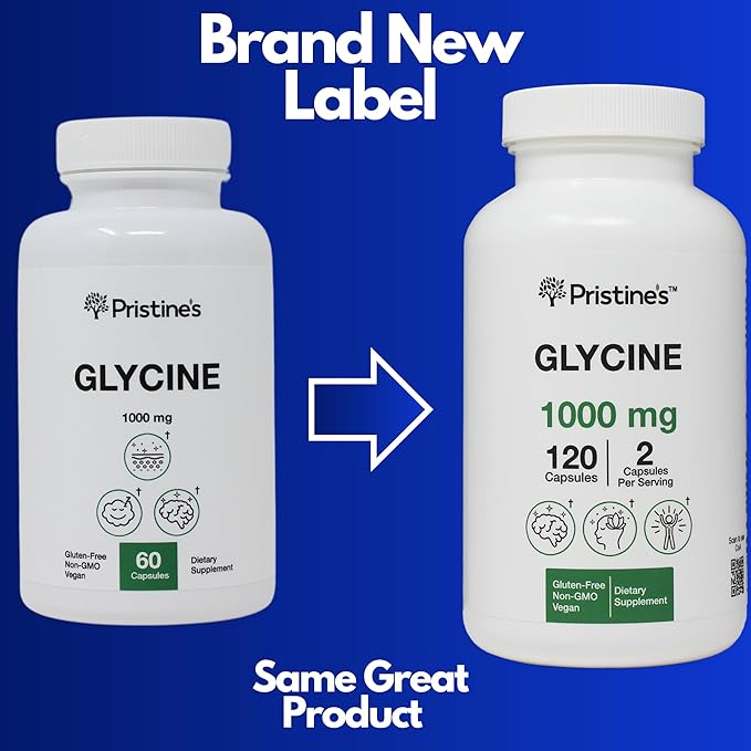 PRISTINE'S Glycine (3 Pack) 1000MG Amino Acid Sleep Support Supplement Capsules - 180 Day Supply - Muscle Recovery, Collagen & Kidney Support Supplement - Vegan, Non GMO, Gluten Free