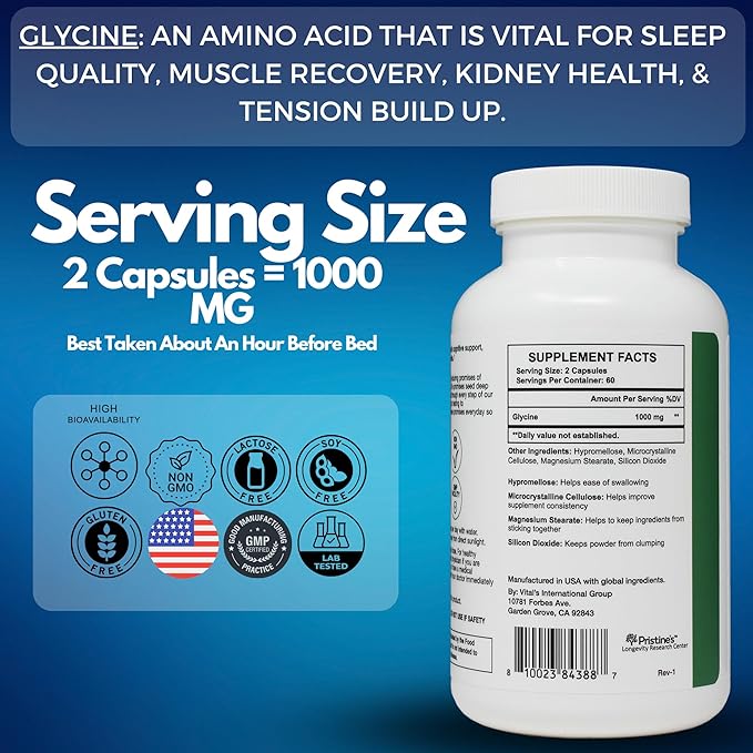 - SLEEP SUPPORT WITHOUT MELATONIN - Tired Of Sleepless Nights? Glycine 1000mg Capsules Can Help To Promote Relaxation, And Help You Drift Into A Restful Slumber. Wake Up Refreshed With This After-Workout Muscle Recovery Supplement.
