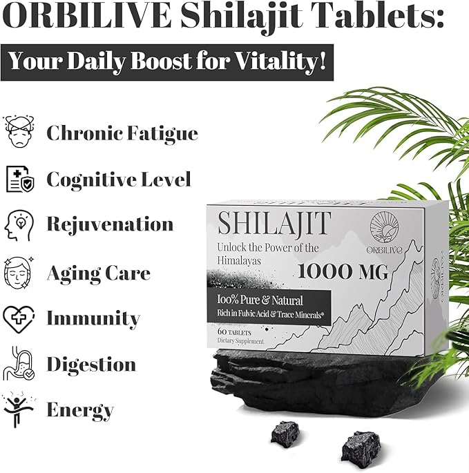 - HIGH-PURITY SHILAJIT SUPPLEMENT: Discover the power of Shilajit Himalayan with our high-purity Shilajit tablets. Hand-harvested for quality, ORBILIVE Shilajit Himalayan organic offers a potent and natural immunity boost. With no additives or undisclosed ingredients, these are high-purity shilajit pure tablets. Shilajit tables are ideal for energy, immunity, digestion, and overall well-being