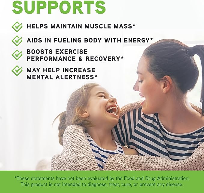 Creatine Powder - Amino Acid Drink Mix Powder for Muscle & Brain Health* - Vegetarian, Gluten-Free & Soy-Free - Unflavored, 90 Servings