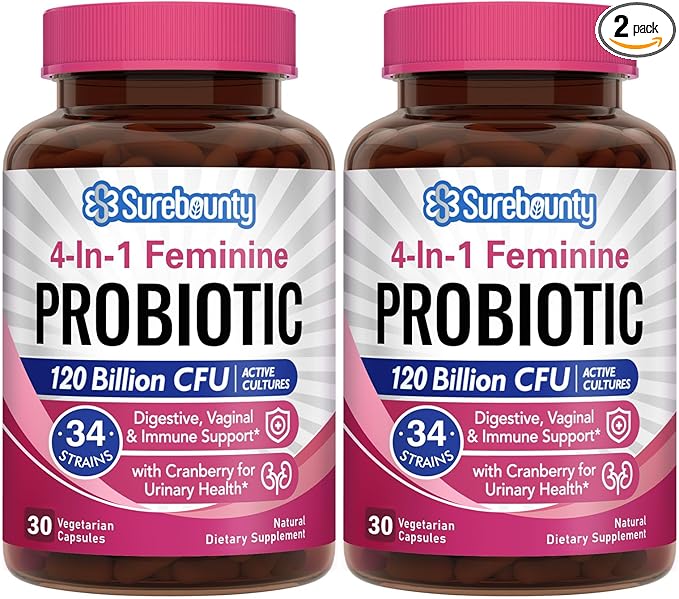 - Highest Potency for Women: Surebounty’s 1 veggie capsule comes in 4 powerful ingredients - 120 billion probiotics, raw prebiotics, natural enzymes, and organic cranberry extract - all specially designed to tailor to women’s specific needs with HIGHEST POTENCY available in the market.* This non-constipation formula supports digestive health, vaginal health & urinary health.* Take ONE capsule daily, Feel Relieved, Cleansed, Lifted & Strengthened with Surebounty 4-IN-1 Feminine Probiotic.