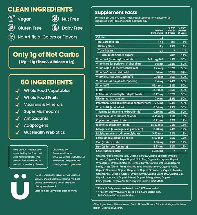 - Formulated to Fit Your Life: At Gruns, we believe that foundational nutrition should be simple and convenient for everyone. We’re dedicated to bringing comprehensive and complete nutrition to you through our gummies, formulated from 60 nutrient-dense and whole-food ingredients.