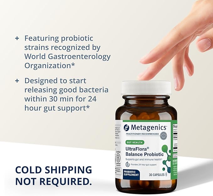- Probiotic Formula: Metagenics UltraFlora Balance Probiotic is formulated with probiotics clinically shown to support gut, digestive, and immune health, helping to maintain a healthy balance of “good” gut bacteria*