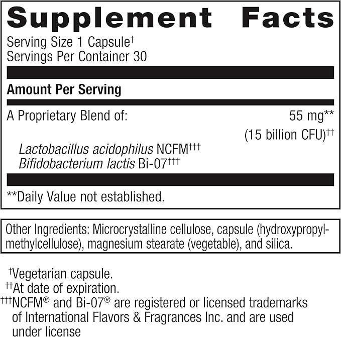 - Daily Probiotic Support: This daily probiotic features B. lactis Bi-07 and L. acidophilus NCFM probiotic strains recognized by World Gastroenterology Organization