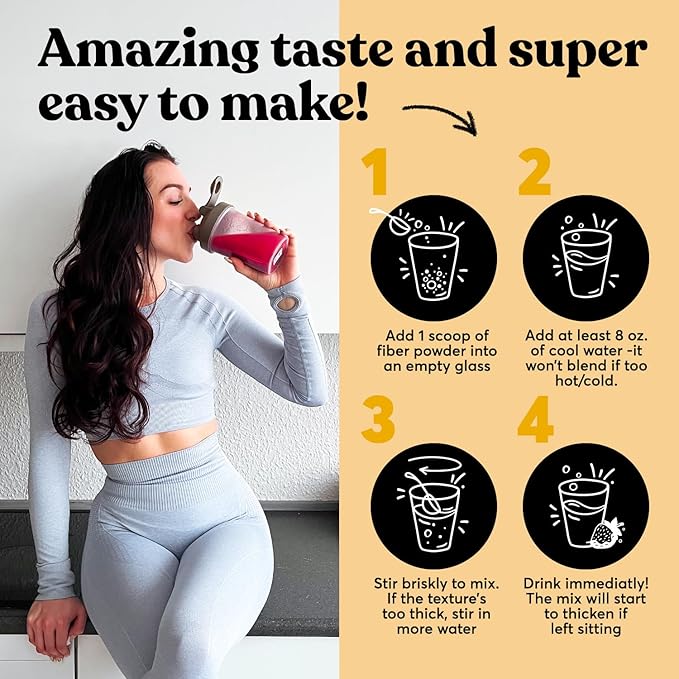 - BOOST GUT HEALTH AND ENERGY - Mix 1 scoop of psyllium husk fiber powder with 12-14 fl oz of water, shake, and drink immediately. The delish, naturally flavored (*strawberry) drink helps achieve gut health goals and lose weight.