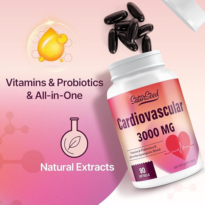 Cardiovascular Supplement 3000MG Multi-Vitamins, Probiotics, Omega-3 & CoQ10 Synergistic Blend for Adults (2 Bottle)