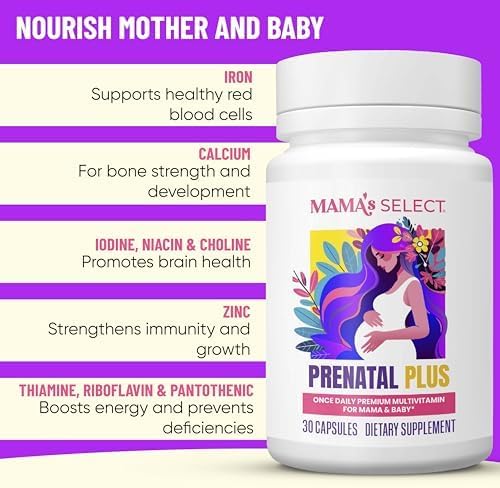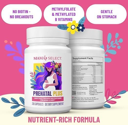 Mama's Select Prenatal Vitamins – Allergen-Free, MTHFR Friendly, Methylated Folate & B Vitamins, Easy-to-Digest, Supports Fetal Development, Once Daily, Vegan, No Biotin